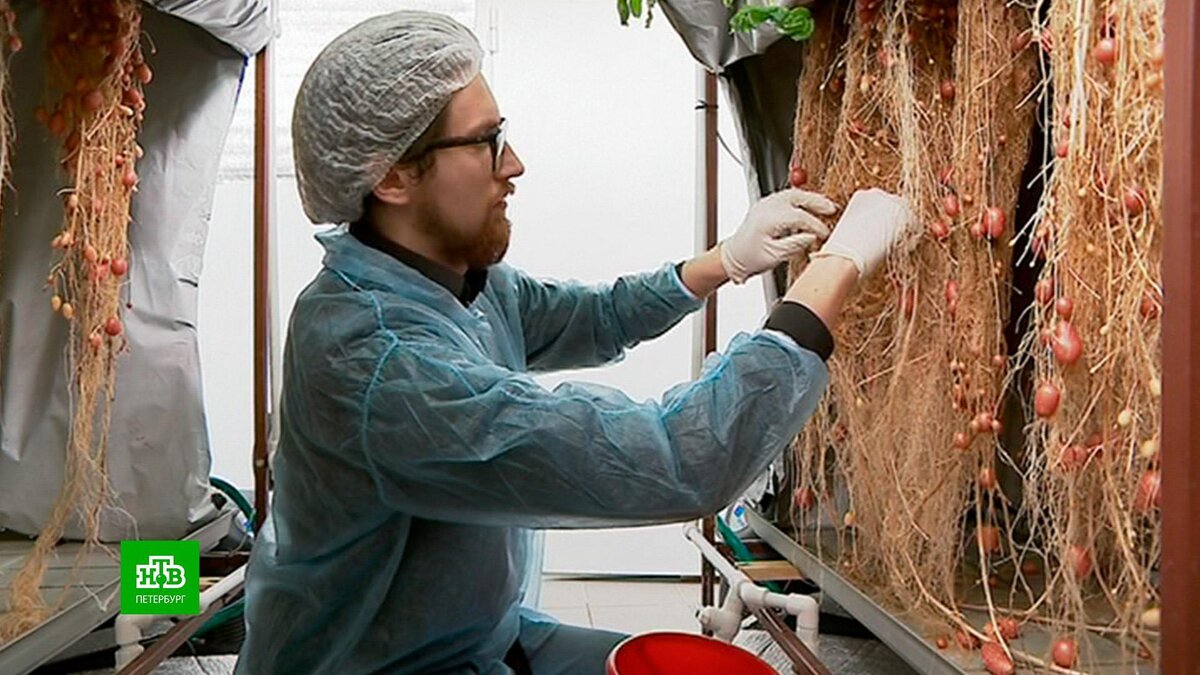 [ Смотреть видео на сайте НТВ ] Ученые Всероссийского института генетических ресурсов растений имени Н. И. Вавилова уверяют, что на ленинградской земле при желании можно выращивать всё: от винограда до персиков. Например, картофель на Всеволожской селекционной станции готовы брать буквально из воздуха. Висячие картофельные сады, окутанные легкой дымкой, сегодня новое чудо. Растения словно парят: питательные вещества, необходимые для их роста, летают в воздухе. На аэропонную технологию уже сделали ставки производители семян. На этой селекционной станции установку пока тестируют, хотя уже понятно, что мал клубень, да дорог. Иван Немцев, научный консультант компании «Всеволожская селекционная станция»: «Мы с одного растения можем получать до 300–400 клубней наперевес тепличной технологии, которая позволяет получать только до 6–8 клубней». Из мини-клубней вырастет картофельная элита, поэтому сегодня малышей холят и лелеют. Большинство вирусов и болезней распространяют насекомые, а тут кома