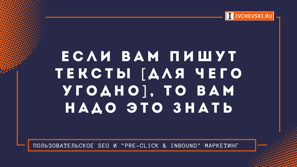 ❗ Сначала важный тезис: копирайтинг — ключевой элемент интернет-маркетинга, он всегда и во всем есть. Сайт, соцсети, рассылки, боты, реклама — что ни делайте, тексты и копирайтинг будет иметь решающую роль [тут аргументы].
