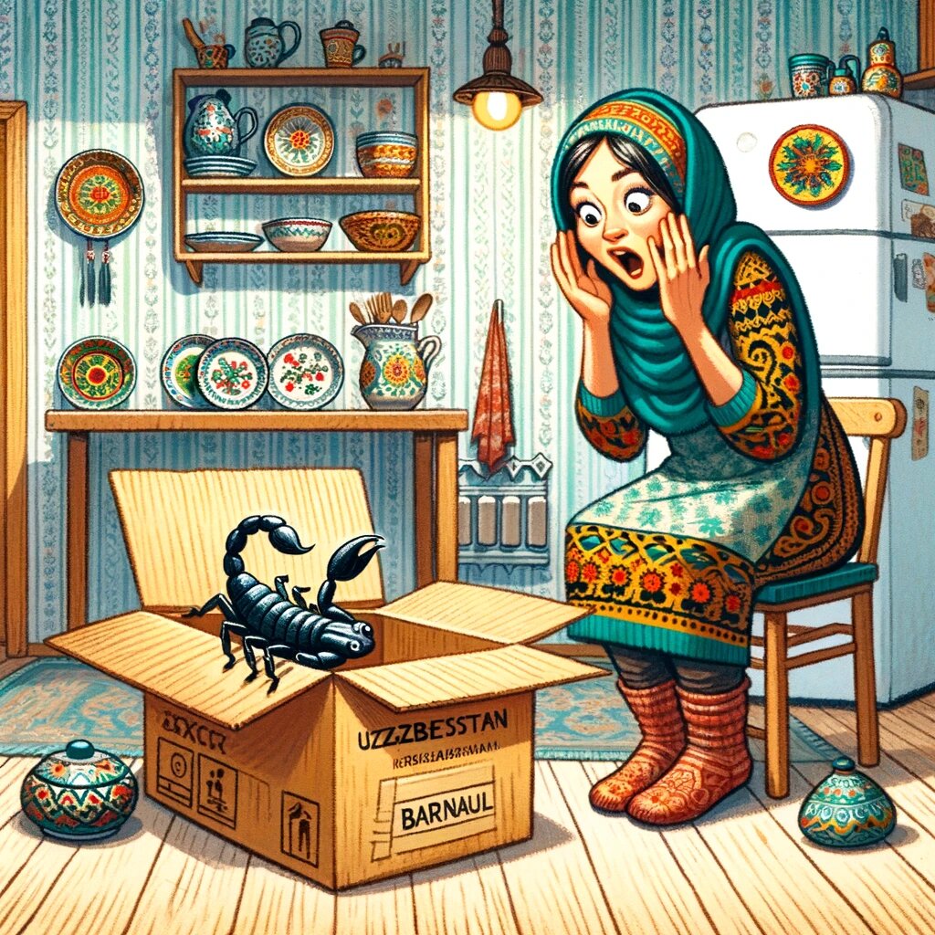 Весенний день в Барнауле был полон солнца и свежести, когда Марина, местная жительница, получила долгожданную посылку. С нетерпением разрезая скотч, она предвкушала увидеть набор уникальных тарелок, заказанных из далекого Узбекистана. Тарелки обещали быть украшением её кухни, выполненными в традиционных узорах этой загадочной страны. Когда крышка коробки поддалась, первым делом Марина заметила блеск глазурных узоров. Но в следующий момент её взгляд остановился на неожиданном госте — маленьком скорпионе, который, видимо, тоже решил покинуть родные пески Узбекистана. Сюрприз вызвал у женщины не столько испуг, сколько удивление. Скорпион сидел среди тарелок, ни малейшим образом не выказывая признаков агрессии. Не решаясь взять его руками, Марина обратилась за помощью к Юлии, владелице местного приюта для экзотических животных. Юлия быстро откликнулась. У неё уже был опыт ухода за опасными насекомыми, и новость о скорпионе в Барнауле её не испугала, а, напротив, вызвала профессиональный и