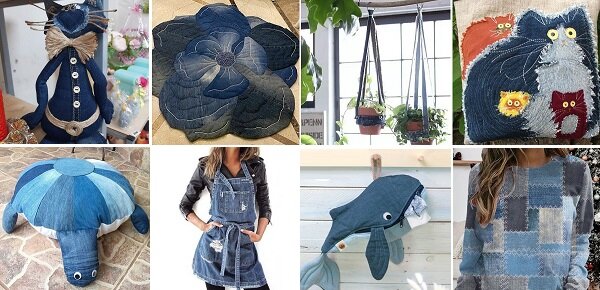 Идей на тему «вторая жизнь джинсовых вещей» не перечесть. И вот очередные! Подушки Напольные, диванные, садовые… В гостиную, на лоджию, в детскую… Подушки из джинсы прочные и немаркие и это — их главные достоинства! Коврики Главный минус самодельных ковриков в том, что они скользят, что делает их травмоопасными. В продаже можно найти противоскользящую подкладку (продается на метраж). Ее можно подшить к нижней стороне коврика. Сумки Конечно, самодельная сумка из джинсы будет уместна не везде, но в качестве хозяйственной и пляжной подойдет вполне. Подвески Пластиковые подвески способны выдержать горшок до 5 литров (и то, один сезон, если на улице). А вот для джинсовых ограничений нет! Абажур Джинсовый абажур — идея нестандартная. Здорово подойдет для интерьера дачи или лоджии. Картины Аппликация — увлекательное занятие, но, кажется, что больше — «детское». Разнообразие фактур и оттенков джинсовых лоскутов позволяет делать красивые вещи для «взрослого» интерьера. Игрушки Интерьерные игруш