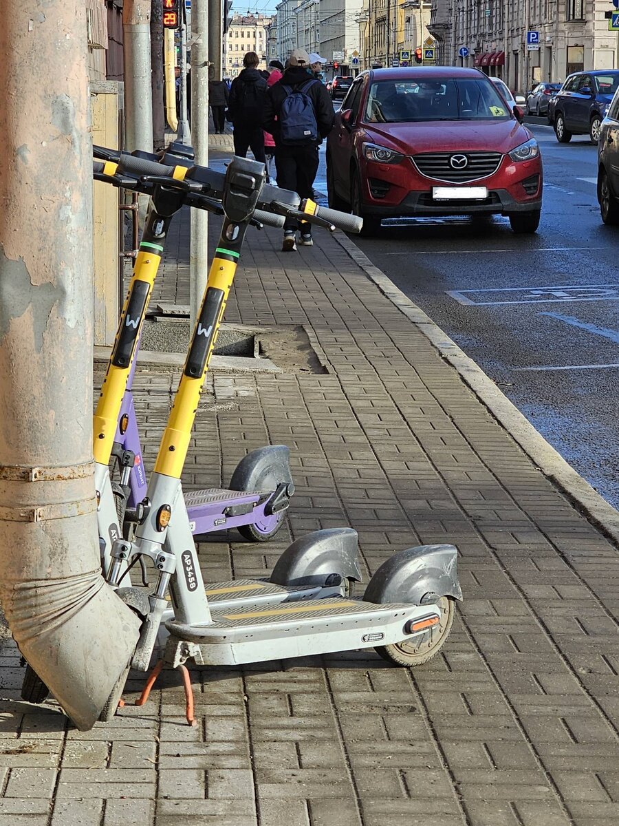 12 апреля 2024 года начальник Научного центра безопасности дорожного движения МВД России Дмитрий Митрошин на отраслевой конференции «Съезд на СИМ» озвучил статистику ДТП на электросамокатах за 2023 год. Количество происшествий со средствами индивидуальной мобильности (СИМ) в России за прошлый год выросло в 3,3 раза, с 941 до 3100 инцидентов. Жители Петербурга уже не знают в какие инстанции “бить тревогу”. Петербурженка искала поддержку и обратилась в нашу редакцию: Здравствуйте! Направляю Вам фото и видео Лермонтовского проспекта от 10 апреля 2024 года, по которому вот уже несколько дней вновь начали ездить скоростные мобильные средства по пешеходным дорогам. Данная сторона проспекта шириной едва ли дотягивает двух метров. В тех местах, где на зданиях установлены сливные трубы (это необходимость), входы в магазины, находящиеся в подвальных помещениях, (спорная необходимость), кусочек дороги для пешеходов вообще меньше метра. Дальше проезжая часть! И на такой узкой дороге разрешают не