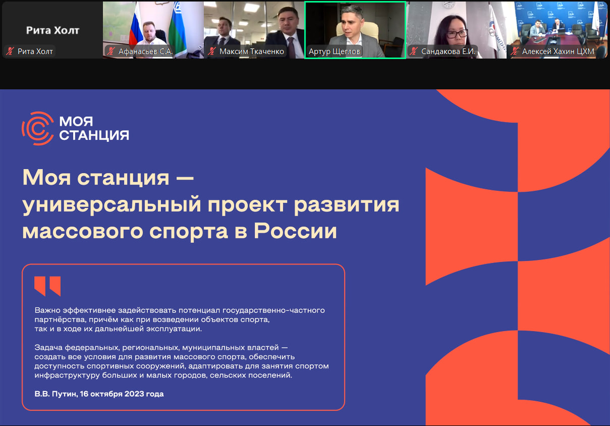 На мероприятии были презентованы возможности федерального проекта «Бизнес-спринт (Я выбираю спорт)» для регионов, а также перспективные проекты ГЧП. Артур Щеглов, управляющий партнёр Стратегической группы «Гиперион», презентовал универсальный проект развития массового спорта в России «Моя станция» – сеть спортклубов быстрого доступа, востребованный формат мультиформатных студий в шаговой доступности от дома или работы.