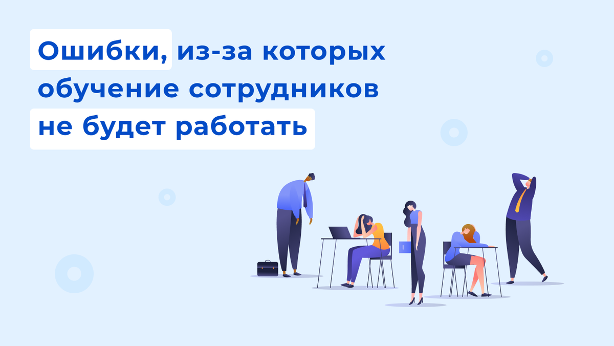 Все больше компаний осознают, что обучение - это уже не просто “приятный бонус”, а реальная необходимость. Дефицит кадров набирает обороты и по прогнозам экспертов не будет останавливаться в ближайшее время. Стоимость найма растет и может составлять более трех зарплат сотрудника, поэтому все больше компаний смотрят в сторону выращивания внутренних экспертов и развития персонала. Однако как не сливать бюджет в пустую? В статье рассказываем, каких ошибок в корпоративным обучении стоит избегать, чтобы сделать обучение персонала максимально эффективным. Топ ошибок при создании корпоративного обучения: 1.Ориентация на тренды, а не на сотрудников. Часто компании, при создании корпоративного обучения, отталкиваются от модных тем, которые сейчас популярны на рынке и в инфополе, и не опираются на потребности компании и самих сотрудников. Решение: перед составлением программы обучения важно проанализировать цели и потребности компании, каких результатов важно достичь, оценить текущий уровень зна