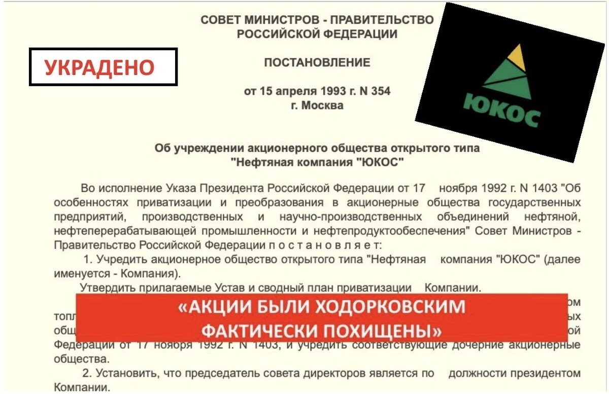 15 апреля 1993 года правительство России массивным пакетом документов за подписью тогдашнего премьер-министра страны Виктора Черномырдина, учредило акционерное общество открытого типа под названием «Нефтяная компания «Юкос».
