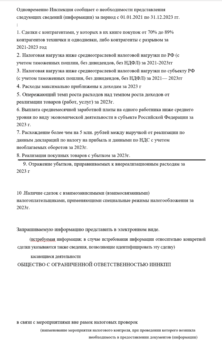 Прежде всего, нужно разобраться, запрошенная информация является следствием необходимости налогового органа что-то прояснить относительно отчётности компании, или же такой запрос - это желание переложить свою работу на бухгалтерию налогоплательщика. Именно от этого, в конечном итоге, зависит необходимость предоставления запрошенной информации, а также формулировка ответа на требование. 1. Примером первой ситуации является, например, распространенный запрос инспекций о предоставлении пояснительной записки в отношении расхождений между суммой доходов, отраженной в бухгалтерской отчётности, и суммой доходов в налоговой декларации (или расхождений оборотов по реализации в декларации по НДС и декларации по налогу на прибыль). Ответить на такой запрос, по мнению Верховного суда (см. Постановление ВС РФ от 06 сентября 2021 года № 5-АД21-70-К2), компания обязана, поскольку необходимость получения такой информации со стороны налогового органа продиктована наличием расхождений в показателях