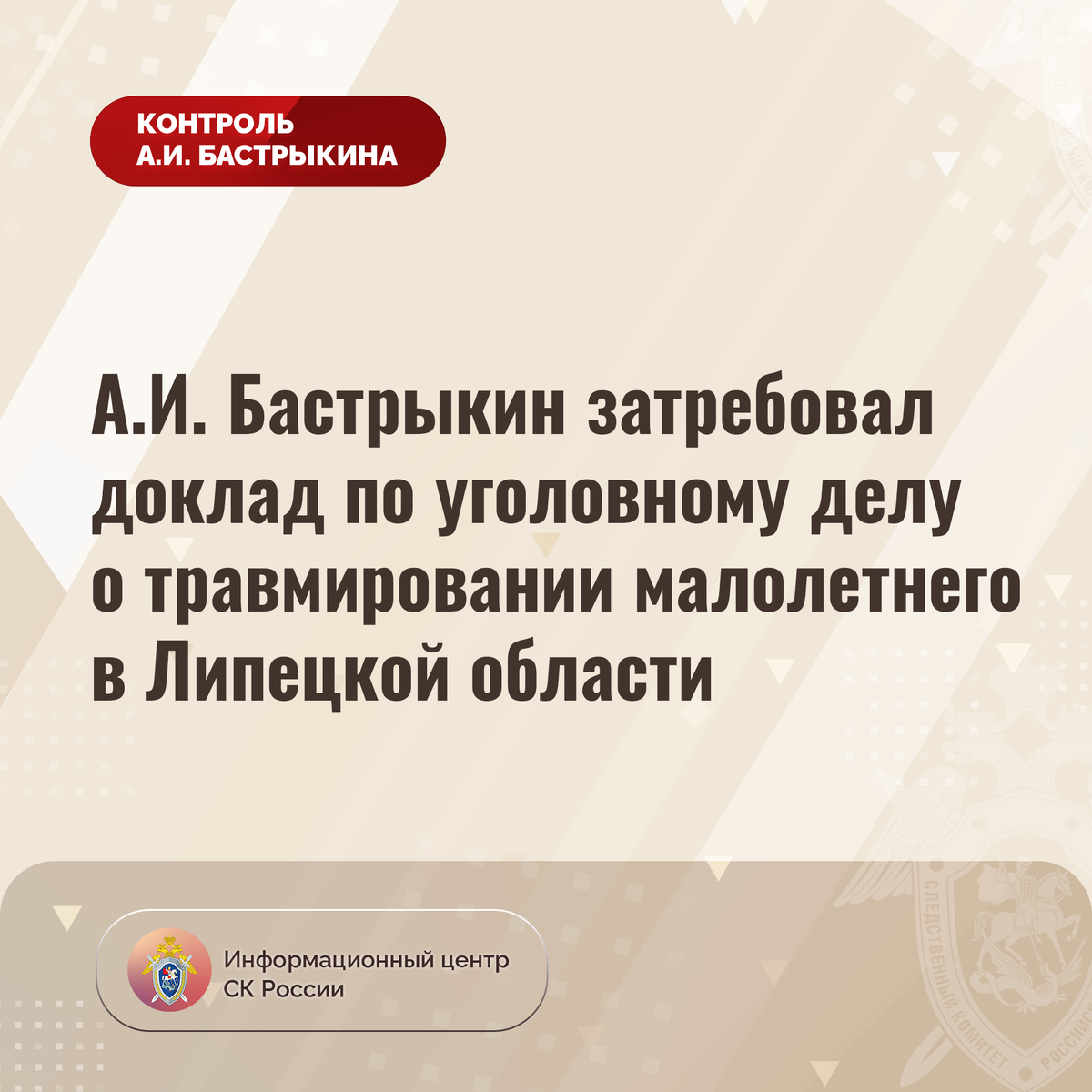 А.И. Бастрыкин затребовал доклад по уголовному делу о травмировании малолетнего в Липецкой области