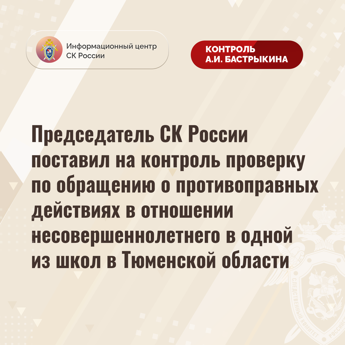 Председатель СК России поставил на контроль проверку по обращению о противоправных действиях в отношении несовершеннолетнего в одной из школ в Тюменской области