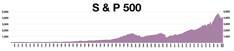 График индекса S&P 500 с 1970 по март 2023 год.