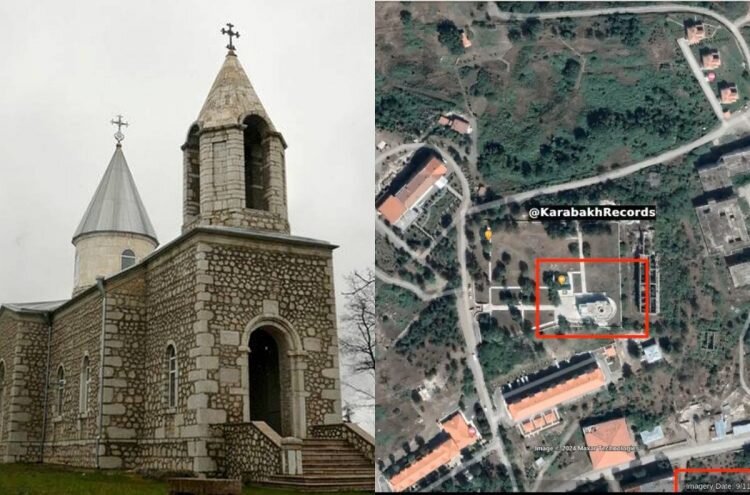 Азербайджан в оккупированном Шуши сравнял с землей армянскую церковь Сурб Ованнес Мкртич (Святого Иоанна Крестителя), известную как Канач Жам, сообщил Karabakh Records в соцсети X. По данным издания, ссылающегося на спутниковые снимки, церковь была снесена в феврале 2024 года. «Азербайджан целенаправленно стирает все следы армян на земле их предков», – говорится в публикации. Как пишет MonumentWatch, церковь Сурб Ованнес Мкртич была построена выходцами из разных сел Арцаха, обосновавшихся в Шуши. Первоначально постройка была деревянной, а церковь и колокольня (в том виде, который известен сейчас) были построены в 1847 как единый комплекс. Церковь получила свое народное название «Канач жам» («Зеленая церковь») так как раньше купол церкви был зеленого цвета. Отмечается, что в 2020 году, сразу же после 44-дневной войны, церковь Канач жам была взорвана, пострадали купол и колокольня. 3 марта стало известно, что Азербайджан демонтирует здания Национального собрания и Союза азатамартиков Арц