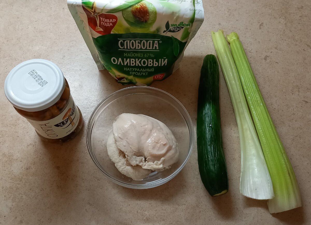 Ингредиенты: - куриная грудка - 1 огурец - 2-3 стебля сельдерея - банка маринованных опят - майонез - соль, специи по вкусу Грудку отвариваем, нарезаем кубиками. Огурец, сельдерей режем соломкой. У грибов сливаем жидкость и также измельчаем. Далее все ингредиенты соединяем. Для придания остроты, в салат можно добавить французскую горчицу. Заправляем салат майонезом, перемешиваем. Приятного аппетита!