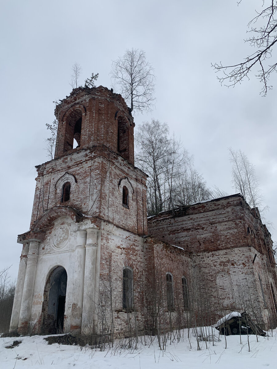Церковь стояла при кладбище. Кладбище частично сохранилось, но в начале марта было полностью укрыто снегом. Вот последние фотографии Покровской церкви: