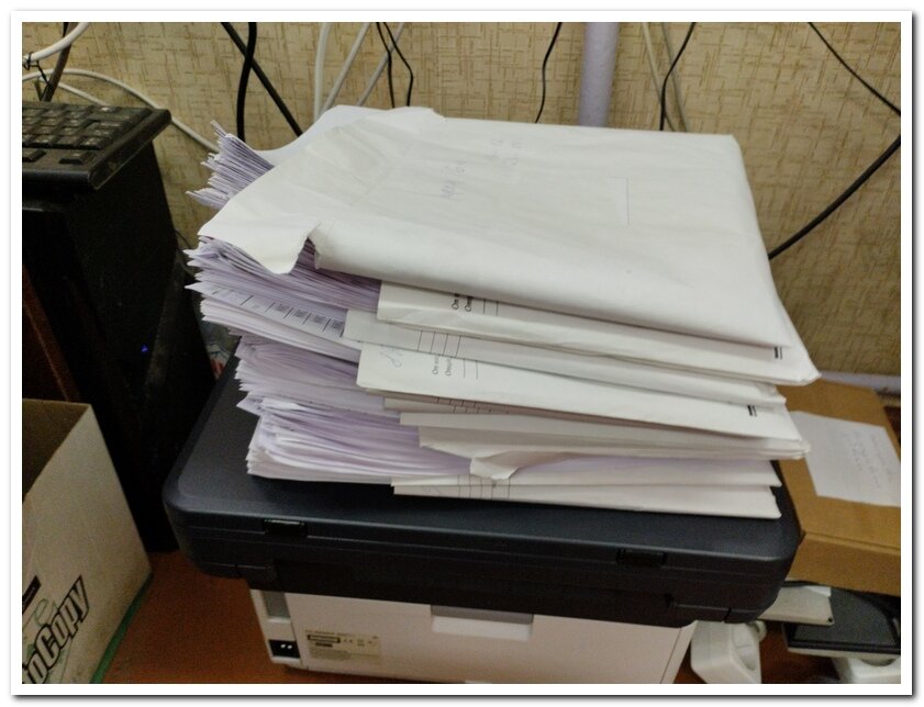 В нашей школе продолжается ежегодная эпопея ВПР. Я тут недавно уже показывал кипу бумаг на моём столе (одна из недавних статей) - заполненные и проверенные опросные листы с заданиями, в которых школьники уже ответили на вопросы. Если кто-то думает, что это было всё, то он таки ошибается! Эта кипа бумаг не уменьшается, а только увеличивается. Я эту гору уже не держу на столе, ибо она загораживает обзор. Сгрузил на стоящий рядом у стола старый принтер, который у меня вместо тумбочки. Всё, что видите на фотке, мне тоже предстоит забивать на сайт. Новый быстроходный принтер мы запустили как раз к началу ВПР. Сегодня в нём закончился картридж, а на счётчике было чуть больше семи тысяч отпечатанных листов. Но ВПР ещё продолжаются... А ещё подготовка к ОГЭ начинает набирать обороты. Вот на этой неделе мы пережили одну так называемую "апробацию". То есть по-русски - пробный прогон экзамена. А на следующей неделе ожидается ещё одна такая "апробация", только более суровая. Мероприятие федерально