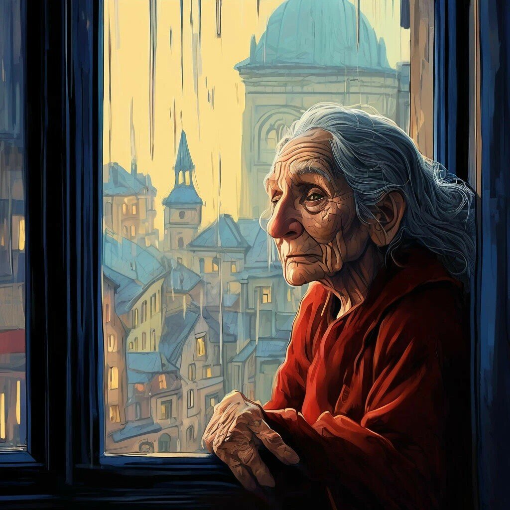 Но для странной худощавой старухи, сидящей в парке на скамейке, этот день приятным не был. Одетая в длинный серый плащ, с таким же серым платком на голове, она и выражение лица имела серое и угрюмое. Видимо, ей не нравилось, что вокруг столько радости. Недовольно посматривая на прохожих, старуха что-то бормотала, и даже иногда замахивалась на них своей кривой палкой, которую не выпускала из рук. А когда несколько голубей опустились возле скамейки, в надежде на лакомство, она со злостью прогнала их.