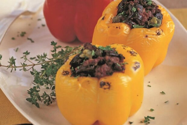 ИНСТРУКЦИЯ ПРИГОТОВЛЕНИЯ 1.Срезать у баклажанов кончики и нарезать их кубиками по 2 см. 2.Выложить в дуршлаг, посыпать солью и оставить на 1 час. 3.Разогреть духовку до 230 градусов. Смазать оливковым маслом форму для запекания ровно такого размера, чтобы все перцы поместились вертикально. 4/Маленьким ножом вырезать из перцев плодоножки, удалить семена и перегородки. 5.Промыть баклажаны и обсушить бумажными полотенцами. 6.В большой сковороде разогреть 125 мл оливкового масла на среднем огне. Выложить баклажаны и обжарить, время от времени помешивая, до мягкости — около 10 минут. Добавить помидоры, рубленые маслины, измельченные анчоусы, каперсы, ме