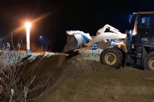 В настоящее время на месте работает строительная техника и засыпает протечку, образовавшуюся у моста. Местные жители наблюдают за происходящим.
