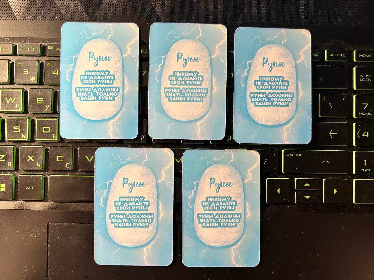И руну на него достаем. В данном случае достанем пять, на выбор, а вы выбирайте. Если вопрос не ваш, но у вас тоже так бывает, и вы тоже иногда задаетесь вопросом "это я предвидела или накаркала", то тоже выбирайте.