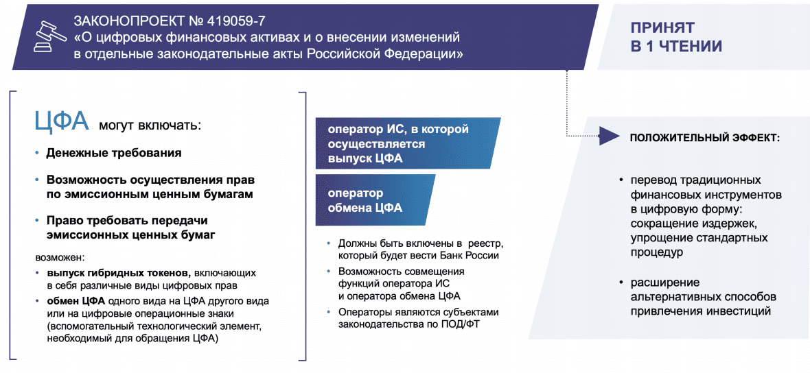 Закон о ЦФА вступил в силу с 1 января 2021 года. Такими активами признаются четыре