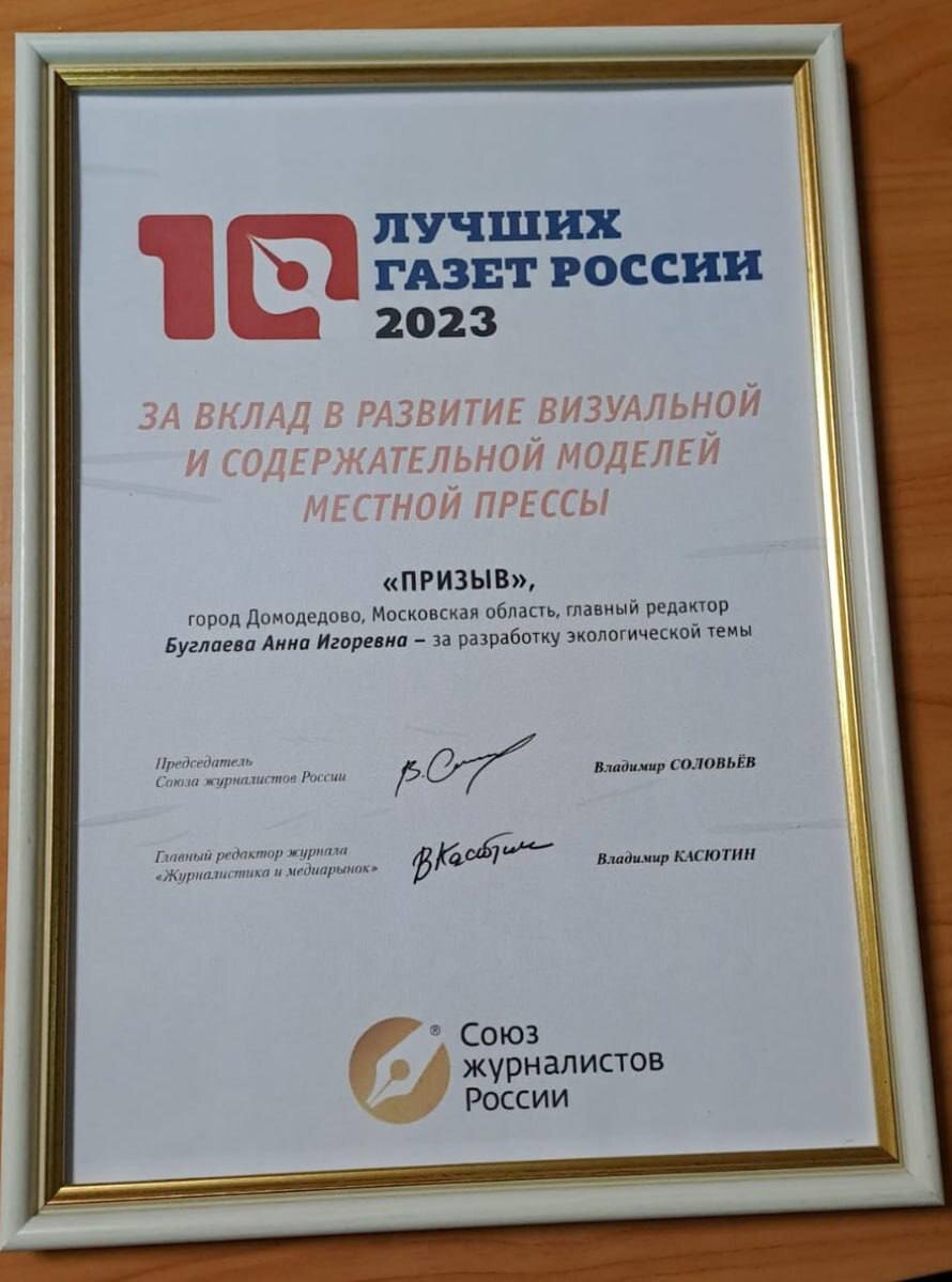 В ежегодном конкурсе профессионального мастерства «10 лучших газет России» отметили домодедовский «Призыв».