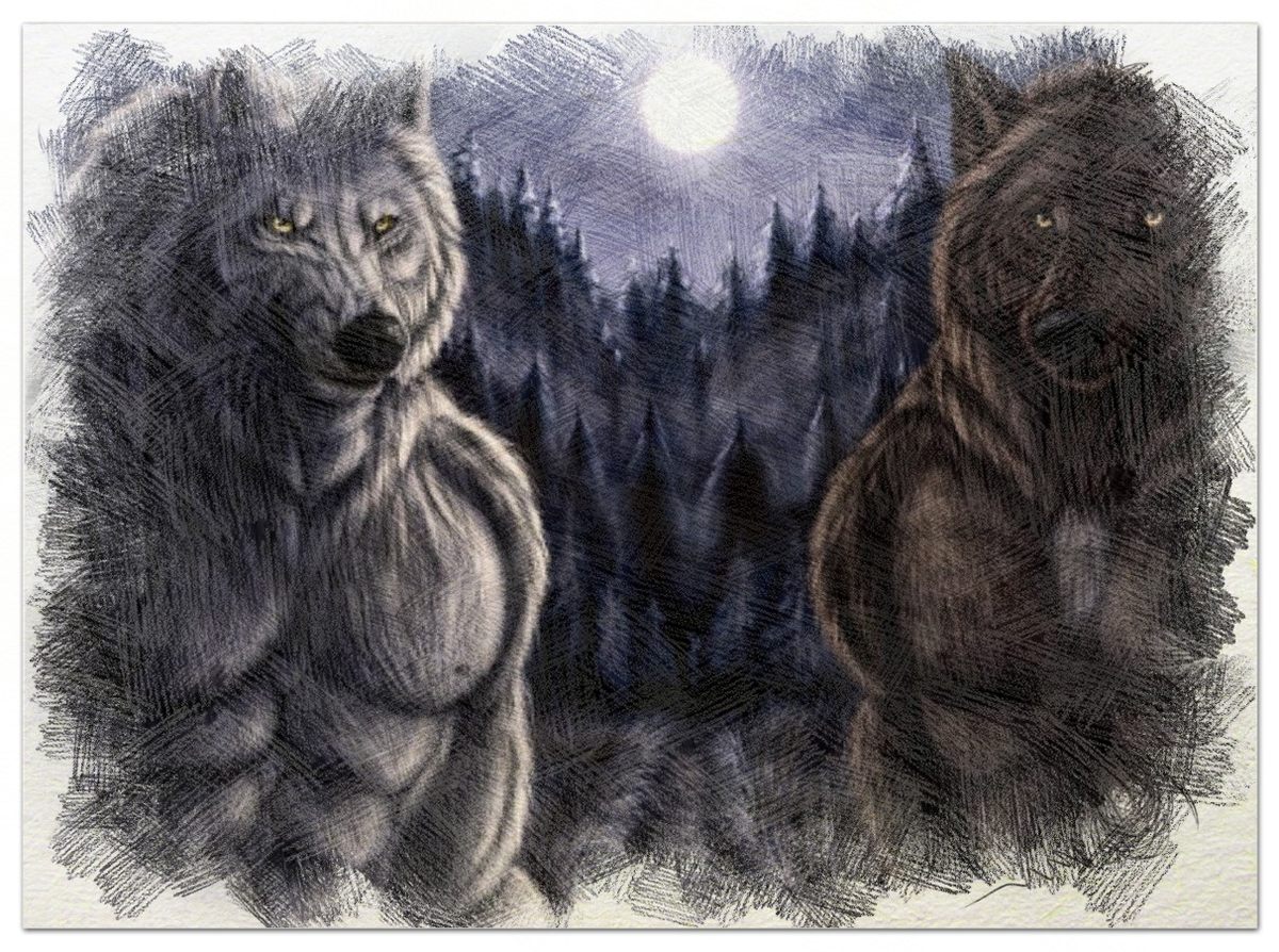 К нему присоединились восемь волков. По одинаковым звериным мордам никого не узнать, но выручает обоняние. Втянув носом, понял кто перед ним. Удивлён своим новым способностям.