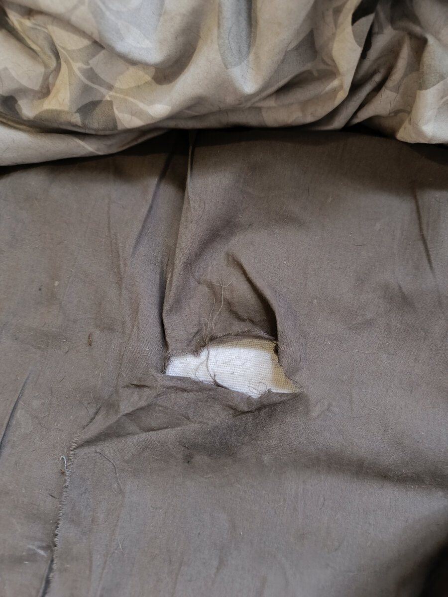 Ни для кого не секрет, что собаки шкодят. И у меня тоже бывает, особенно молодые. Всё это нужно терпеливо контролировать и объяснять. Не, до енота Илюши нам, конечно, далековато, но случается. Вот вы проснетесь ночью от звука "хулиганства"? Нет? А я просыпаюсь. Да, для меня лучший "будильник" не только тошнотики моей собаки (подскакиваю, как ошпареная), но и любой нестандартный звук из их локации. Вот и сегодня, проснулась от того, что что-то режет слух... Спускаюсь вниз. А там... Тадам... Видимо, Дашенька что-то страшное приснилось... Причем остальные собаки понимают, что Даша "лоханулась" и исчезли под одеялами с комментариями: "это не мы". Была отругана. Утро началось с иголкой и ниткой. Младшая звезда в печали. Ну вот что с ней сделать? ... Понять и простить... А потом дальше спать.