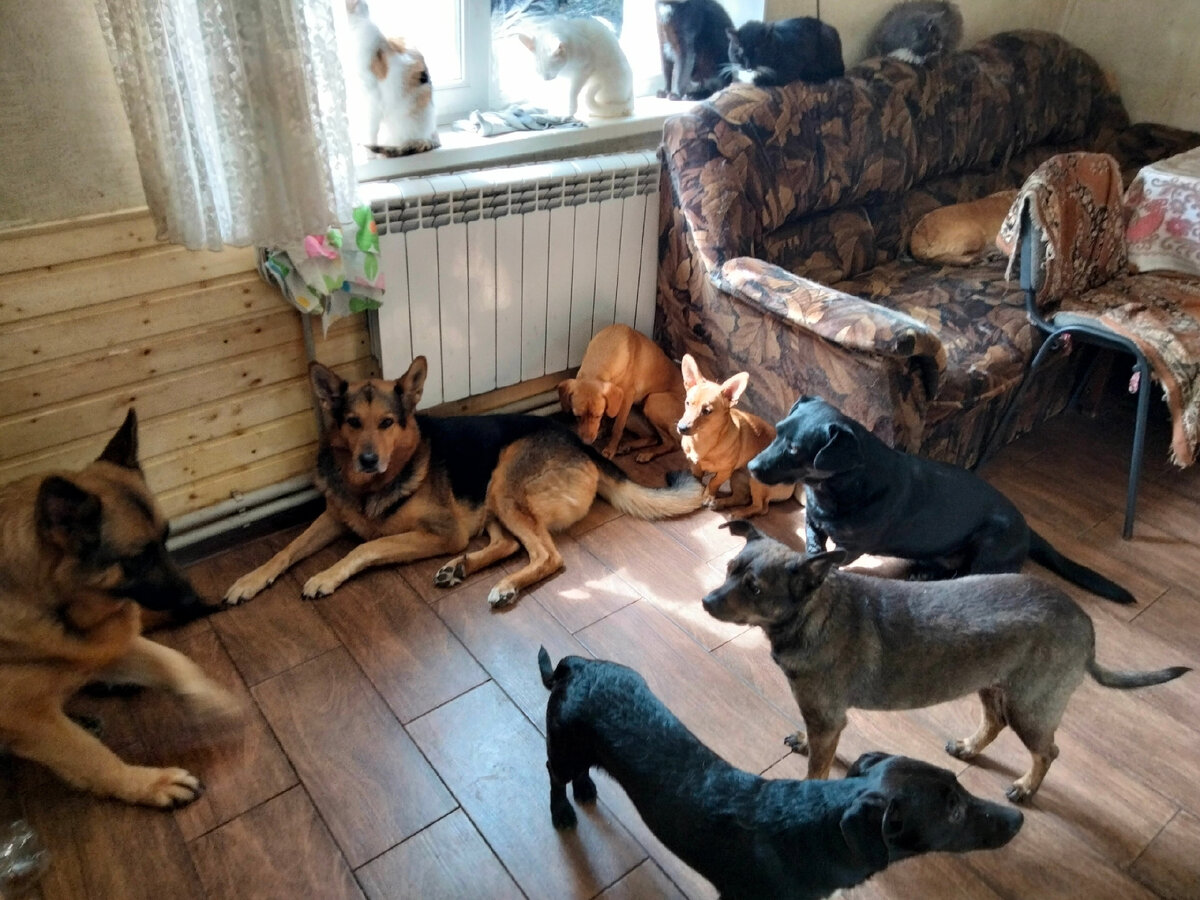 Ну вот и всё! Мы в сельском мини-приюте Людмилы Ч. остались без корма! У нас катастрофа! Сегодня животные сидят на голодном пайке, кормить нечем, только каша. Что будет завтра не знаем, уповаем на Господа, более семидесяти животных остаются голодными. У старых и больных закончился мягкий корм, растягивала волонтёр как могла, но это к сожалению не спасло. Белизна, бумага, чистящее, моющее все по нолям. У нас полный завал. Что делать? Хочется просто выть от беспомощности. Сейчас у нас нет совсем ничего, ехать в город за кормом и продуктами не с чем. Помощь друзей к сожалению не спасает, слишком много проблем и большие траты, а желающих помочь очень мало. Помогают в основном одни и те же люди, те кому не безразлична жизнь и судьба наших хвостиков. Если бы мы жили в центре, можно было бы сходить пару раз на рынок и донести все в ручную, так как женщина и делала когда жила в квартире. Но мы уже пять лет живём в селе, за тридцать км от города, из-за чего и возникли проблемы с доставкой про