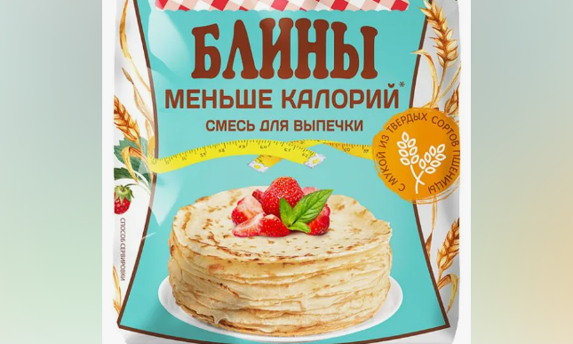 Как то раз попалась мне на глаза такая вот смесь для приготовления блинов. Ну привлекательно же "меньше калорий" и обязательно сантиметровую ленту добавить надо. Прям таки срочно хватайте эту пачку и худейте.