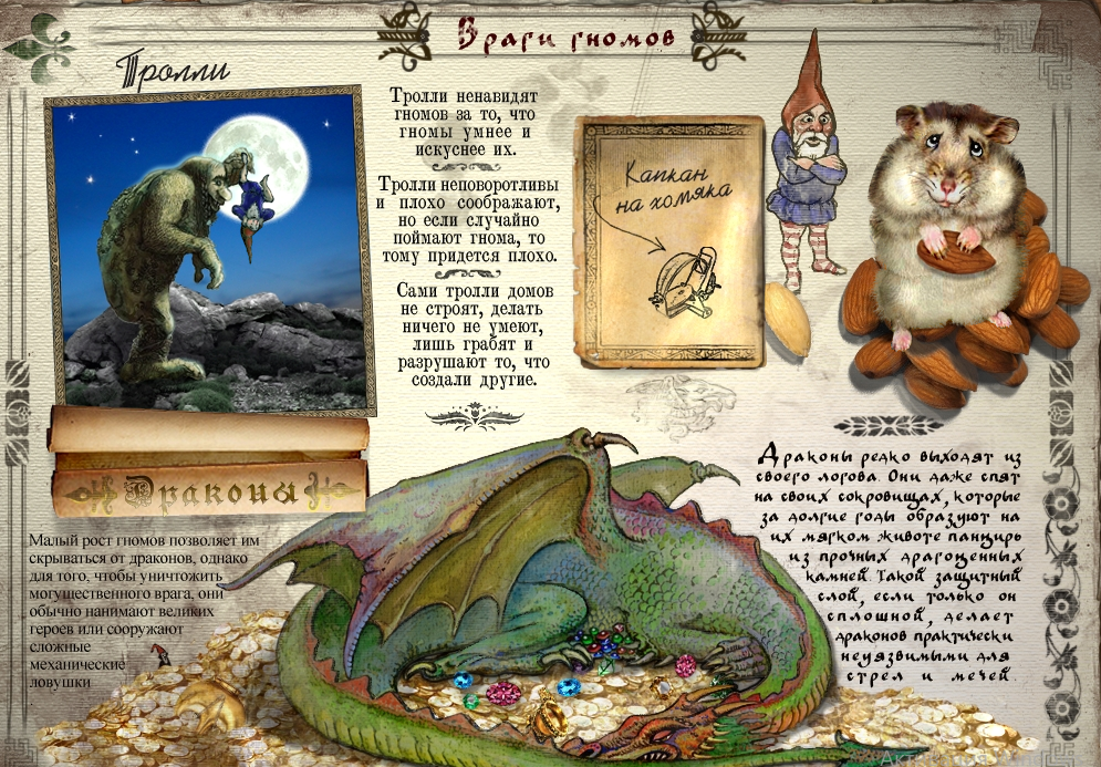 Здравствуйте. Сегодня мне хотелось бы рассказать вам о таких существах как гномы. Все мы в вкратце знаем, кто это, но много ли известно об их быте, ремёслах и в принципе жизни? Это действительно интересно. В первую очередь, это мифологические создания из германо-скандинавского фольклора, персонажи низшей мифологии (т.е. не имеют божественного статуса) нардов Европы. Имеют множество имен в разных странах дверг, цверг, дворф, краснолюд, трепясток, более древние наименования: нибелунги, нижние альвы, кобольды. В свое время, слово «gnomus» (с греческого «знание») в значении «подземный житель» популяризировал знаменитый шведский философ, врач и алхимик Парацельс. Все это лирика, вопросы остаются открытыми: существуют или существовали ли они? Если да, то каких успехов они добились и как живут сейчас или что их погубило? Все ли они такие, какими мы привыкли их себе представлять? Попробуем найти на это ответы: 1. Гном-ювелир. Искусно делает украшения, золотую и серебряную посуду, оружие и рамк