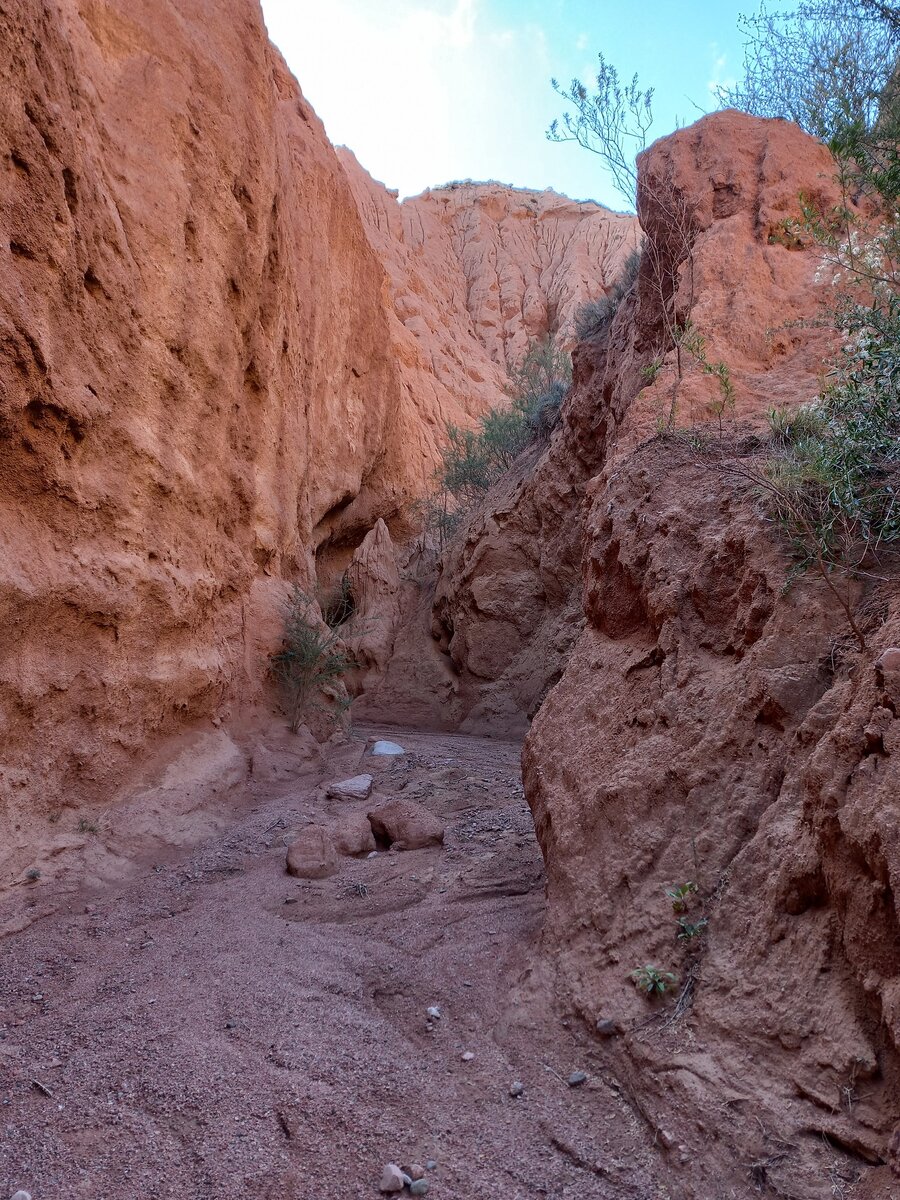 Мы гуляли тут в полном одиночестве. Ущелье узкое и длинное, мы прошли по нему около километра. Постепенно ущелье повышается, а стены каньона расширяются.