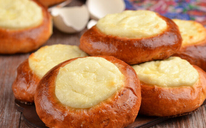 - Смазываем ватрушки. Можно как маслом, так и сбитым яйцом.