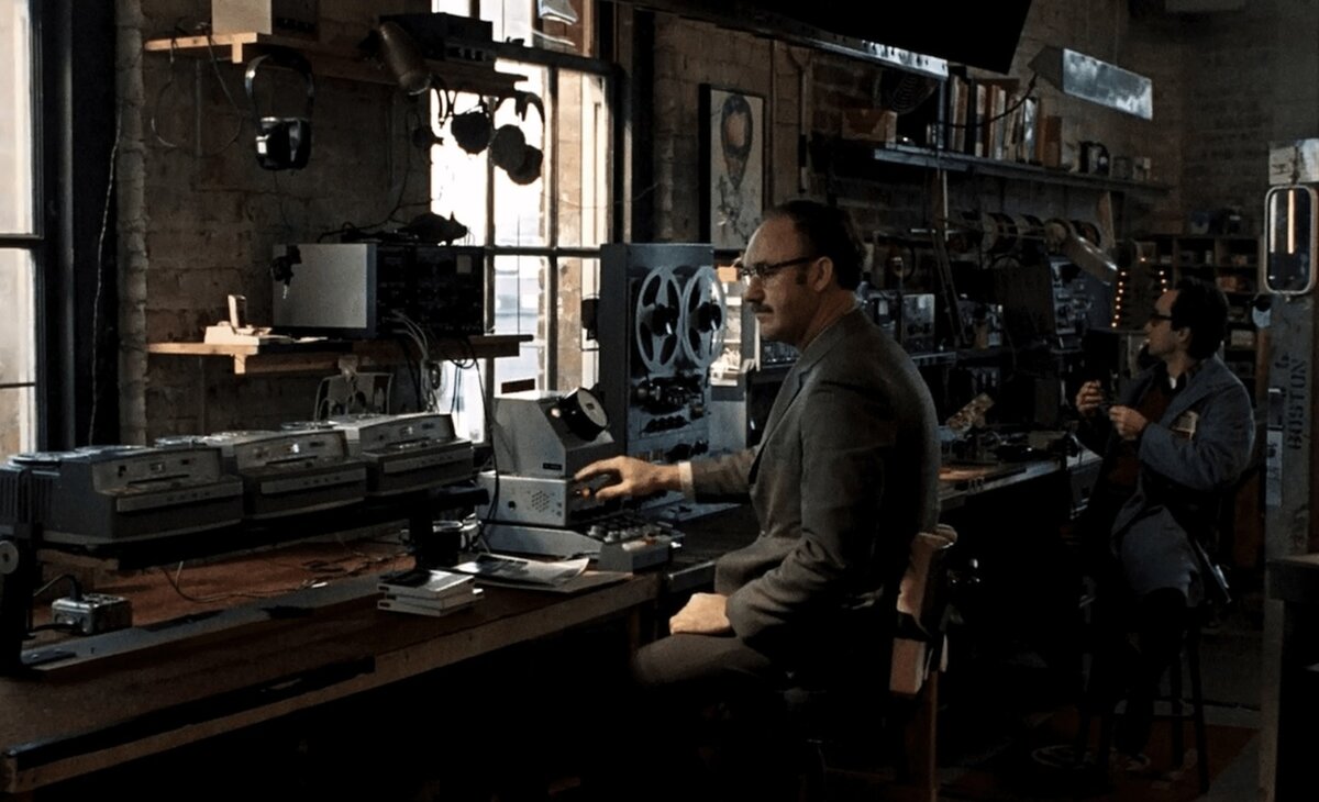 В 1960-е, благодаря холодной войне, революция происходила в области как звукозаписи, так и прослушивающих устройств. Обилие возможностей манипулировать аудио стало источником паранойи: если ты звучишь — значит, будешь подслушан. Так и в фильме Копполы специалист по прослушке не доверяет ни ушам, ни источнику связи. Любой звук — под подозрением. В итоге прослушивающее устройство становится вненаходимым, божественным: его нигде нет, но оно — везде. (Руслан Комадей)