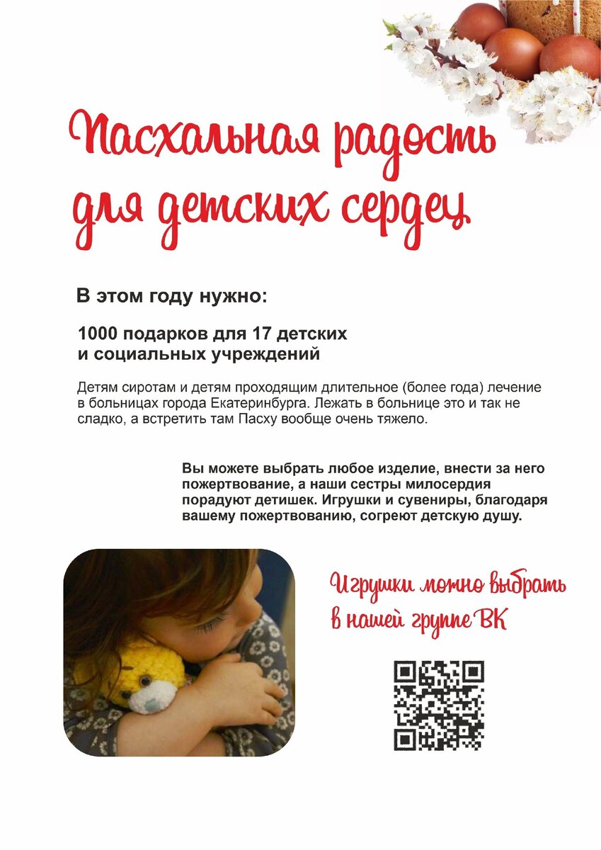 В Екатеринбурге Православная Служба Милосердия готовит подарки для тысячи своих маленьких подопечных. У этих детей — сложные диагнозы. Они проходят лечение в разных медучреждениях — в тубдиспансерах, лечатся от онкологии, других заболеваний. В их палатах всегда есть гости, готовые помогать, — добровольцы и сестры милосердия.