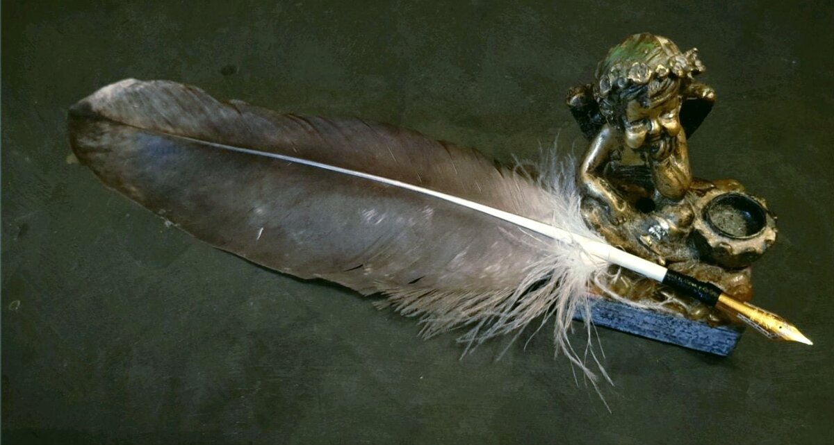 Позже 2500 лет назад стали писать гусиными перьями. Кончик пера надрезали и макали в чернила.