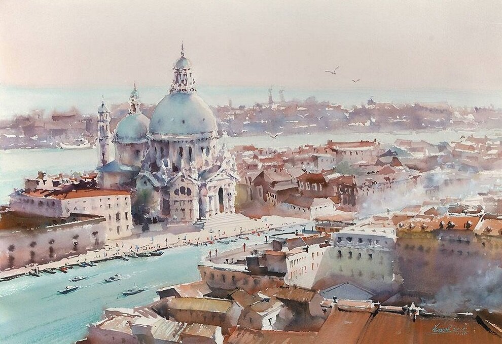 Об этом китайском художнике известно нам очень мало. Но когда я увидел его чарующие акварели, то не смог пройти мимо. Эти удивительной красоты зарисовки, этюды, пейзажи поражают до глубины души! Сердце замирает от восторга. Настоящее мастерство говорит само за себя. Кван Йук Пан - это современный китайский художник. Он обожает путешествовать. Поэтому на многих его полотнах Вы видите известные и знаменитые архитектурные сооружения, туристические места, шедевры старинных мастеров. Все это очень узнаваемо. Но не это главное. Художнику удается поймать атмосферу. Все художники знают, насколько коварной и непредсказуемой может быть акварель. Однако Кван Йук Пану удается с легкостью с ней справляться, даже рисуя на пленэре. Каждый его этюд достоин быть заключенным в красивую рамку и украшать собой стену любого музея. Художник умело пользуется законами света и тени. Его кисть показывает нам всю красоту колоннад, изящество отделки фасадов, рифленые крыши домов. При этом вся картина напоена воз