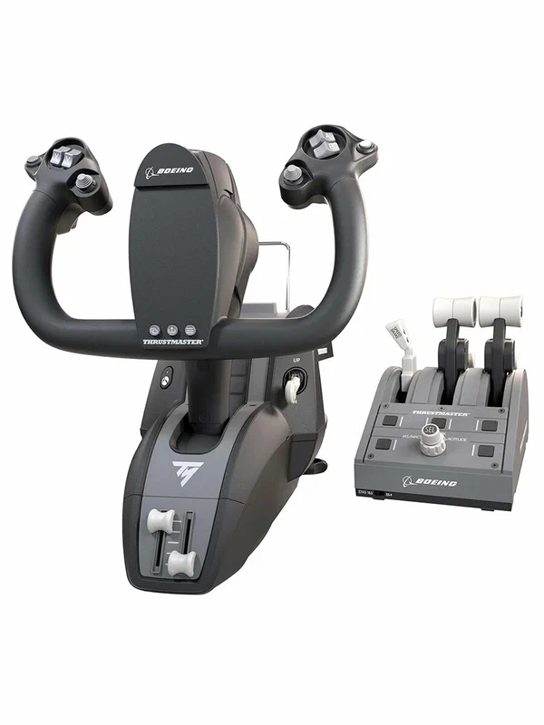 Первый штурвал (руль управления в масштабе 1:1), моделью для которого послужил легендарный штурвал самолета Boeing 787, полностью повторяющий кинематику полетов и позволяющий игрокам испытать те же ощущения, что и пилоты настоящих авиалайнеров Boeing, благодаря специальному механизму Thrustmaster PENDULR. В сочетании с трехосевым блоком с переставляемыми рычагами управления и надежной металлической крепежной системой TM Flying Desk Mount комплект TCA Yoke Pack Boeing Edition обеспечивает уникальный и абсолютно новый уровень реалистичности управления авиалайнером в игре Microsoft Flight Simulator (на Xbox Series X|S и на ПК), а также в самых известных играх-авиасимуляторах как для консолей Xbox, так и для ПК.