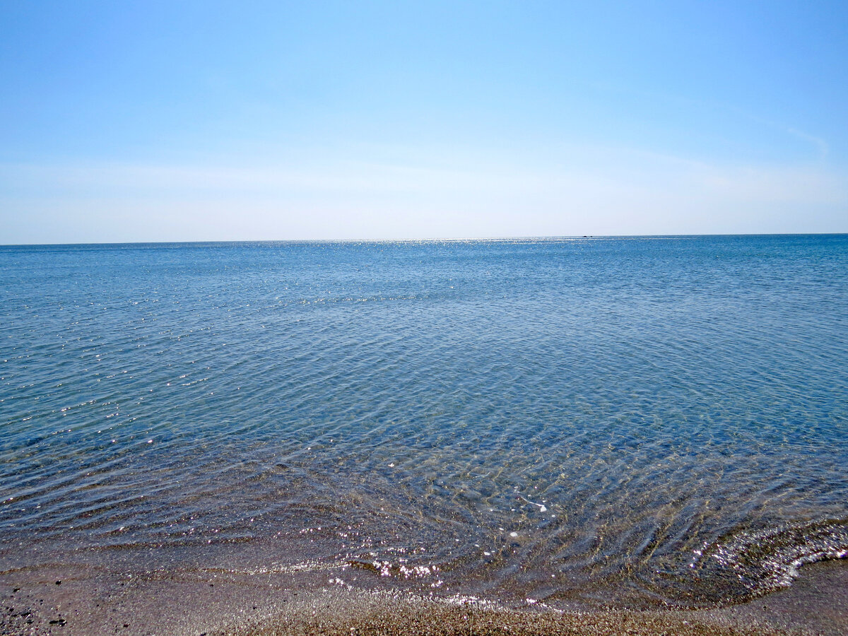 Тихого и прозрачного. Ветер дует с берега, поэтому волны нет. И это хорошо. Иначе бы я берегом не прошла.