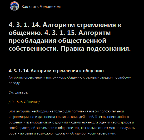 Этот алгоритм необходим не только для получения новой положительной информации, но и для поиска критики своих действий. То есть, поиск любого общения и взаимодействия с другими людьми нужен для оценки своих трудов и своей праведной значимости в обществе, так, как только от них можно получить обратную связь и возможно подсказки об ошибочности своего пути.
