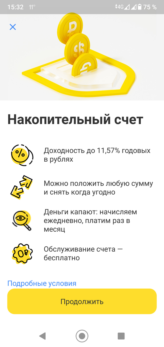 На скрине основные условия. Раз в месяц происходит начисление процентов.