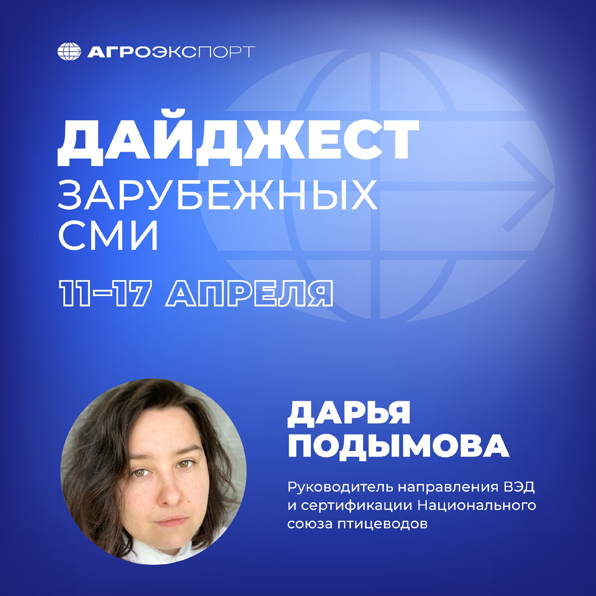 Специальный комментарий — руководителя направления ВЭД и сертификации Национального союза птицеводов Дарьи Подымовой о развитии экспорта мяса птицы в Китай.