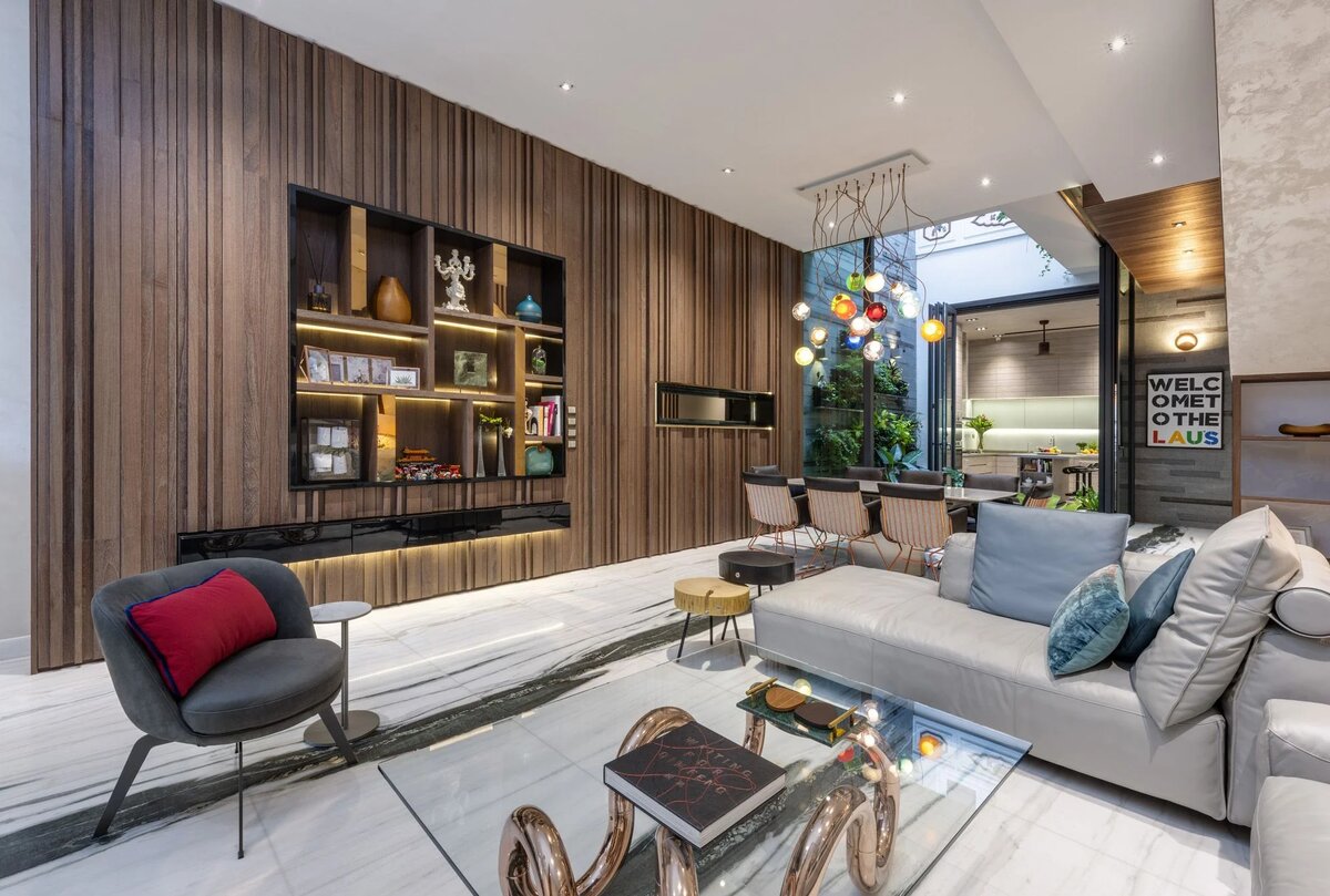 Новый азиатский стиль в дизайне интерьера — это блеск полированного мрамора, черного глянца, золотых аксессуаров, бархата и велюра. Японский минимализм и французское ар-деко объединились, чтобы дать нам самый практичный из люксовых стилей в дизайне интерьера. Азиатский стиль стал более насыщенным на фактуры и контрасты. Кроме любви к традиционному камню и классическому зонированию, в нем проявилась страсть к черным линиям и зеркалам. Принты мрамора, блеск золота, геометричный декор и комбинации различных материалов — это то, что делает этот интерьер особенным. Философией такого интерьера становится одновременное стремление к минимализму и роскоши. Такая квартира может даже оставаться малогабаритной, но в ней будет использован крупноформатный керамогранит, встроенная мебель с подсветкой и интересными модулями, сложные конструкции для дизайна потолков. Важно и то, что азиатский стиль в дизайне интерьера — это прежде всего минимализм. Что означает, что здесь много встроенных систем