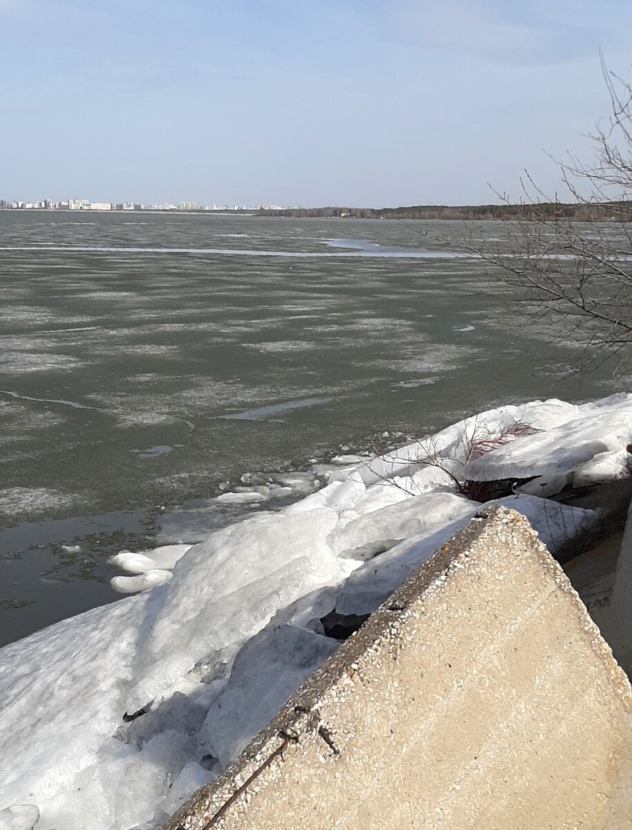 Пляж амз Большой переулок. И сама дамба. На трубе еще снег со льдом. Шершни. Рыбак Наталья Осипова