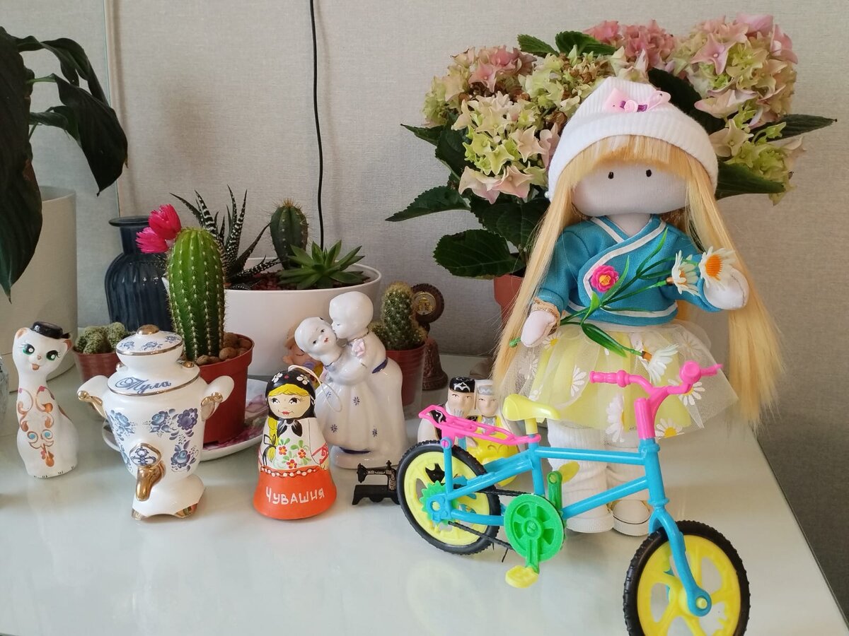 Доброго времени суток, мои дорогие друзья. Вы, наверное, подумали, что у меня новое увлечение. Неее, я с нитками и иголками не дружу, пуговицу могу пришить, да и всё . Я то на машинке в жизни не шила даже , только на игрушечной , но она была как настоящая у меня. Вязание - да, зашло мне в свое время, но спицами, крючком не умею. Я и сейчас бы повязала, только времени нет. А так мне тортов хватает. Ну, а сегодня речь пойдёт не обо мне, я вам поведаю про свою подругу Ольгу. Это она шьёт таких прекрасных кукол. Но вот почему-то стесняется показывать и продавать такую красоту. Я ей сто раз говорила, чтобы выставила на авито или завела канал на дзене и развивала свое творчество . Ольга долго говорила, что это не её, она не умеет продавать, рассказывать, красиво писать. Да мы все здесь не писатели, но нашли себя, нашли друзей и восхищаемся сделанной красотой друг друга. Надеюсь, этот первый шаг подтолкнет её на то, что можно как-то реализовать свои идеи, свое хобби. Про первых двух кук
