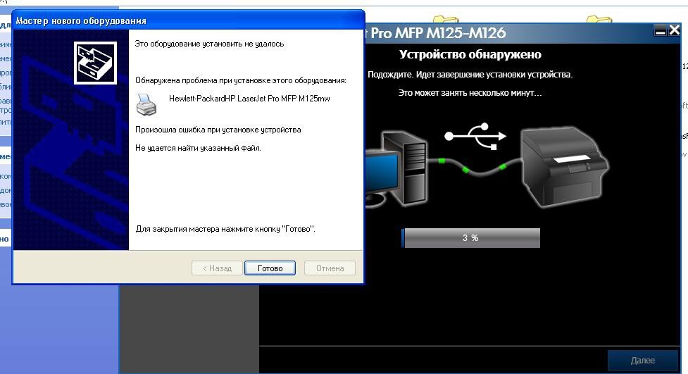 Не устанавливается драйвер на принтер HP LaserJet MFP M125R
