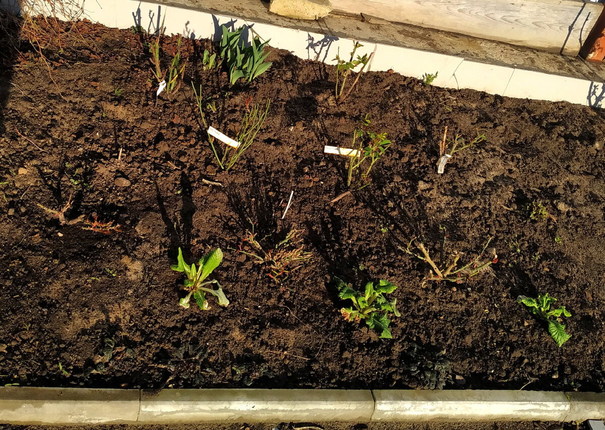 Не смотря на то, что сейчас еще довольно холодно, я пересаживаю цветы именно сейчас: пока прохладно, иногда моросит дождь и росточки у растений в той поре, когда и не большие, но живенькие, готовые покорить этот мир и мой сад. Пересаживая с распустившимися листьями мы рискуем получить унылый вид вялой ботвы. Поэтому я тороплюсь. В первую очередь рассадила розы в розарии №1. Все по плану. Помимо плана там посадила примулы, купленные в этом году. Потому что полиантовая красная примула зиму не перенесла и я решила эти полианты отправить к розам, что бы зимой были укрыты. И клематис не посажен, нет шпалеры пока. Пока так. Троицу из высоких роз (Боника, Блю парфюм и Глория Дей) тоже скомпоновала, согласно плану. Второе, что я сделала - это убрала газон вокруг горки с водопадом. Бесил он меня целый год, требуя постоянной стрижки. А весной окончательно разозлил своим видом. Теперь засаживаю цветами. Полностью не доделала опять, так как переключилась на флоксовый массив, который в при