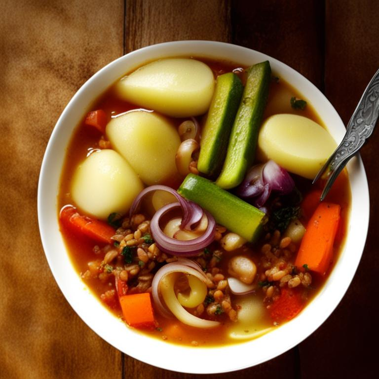Очистить картофель, нарезать кубиками. Когда мясо будет готово, достать его и отделить от костей, вернуть в бульон. Положить в кастрюлю перловку и картофель. Варить 20 минут.