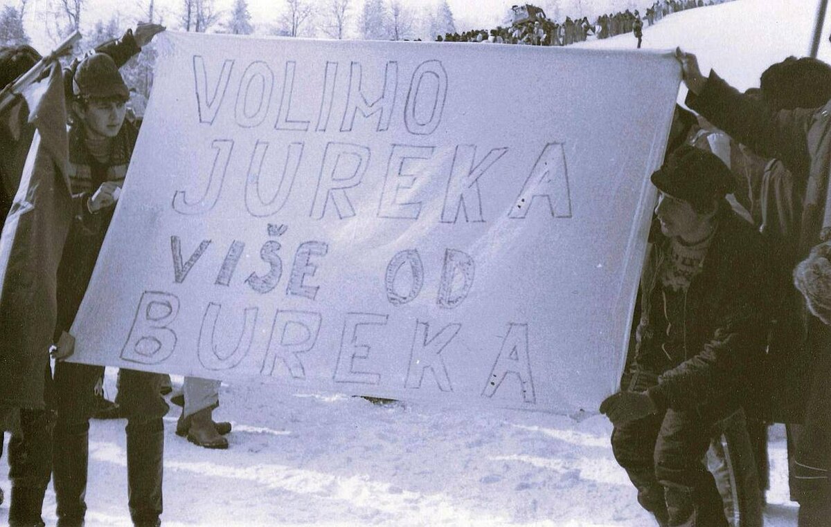 Творческие болельщики хотели придумать лозунг для словенца Юре, но с именем ничего не рифмовалось. Так был создан плакат, на котором было написано «Любим Юрека больше бурека».