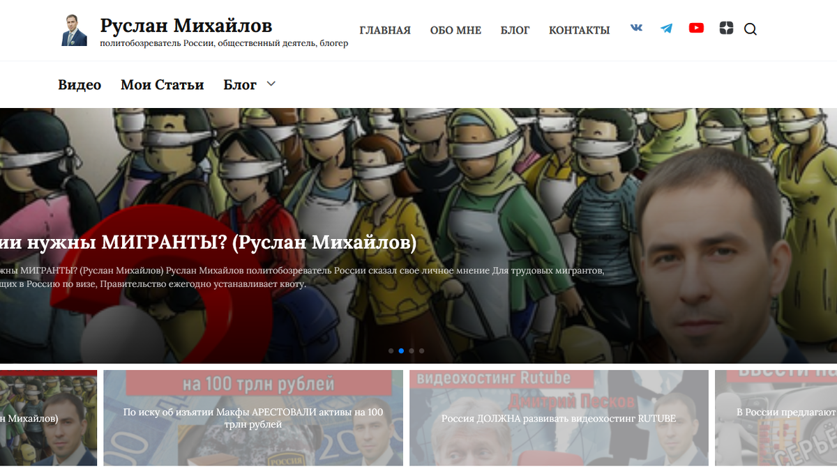 Уважаемые подписчики и гости моего канала, недавно создал официальный сайт Руслан Михайлов всем кому интересна моя тематика и не хочет пропустить свежие новости, рубрику, статьи и другие материалы добро пожаловать на мой сайт Руслан Михайлов https://ruslanmikhailov.ru/ Сайт был создан на платной и хорошей теме, шаблоне Reboot, всем советую этот шаблон он мне понравился и я восторге. Вообще сайт необходимо иметь если вы реально хотите вести свою профессиональную деятельность в интернете Вот рубрики на моем сайте, в будущем будут расширяться В этой статье я сказал свое личное мнение и сослался на подтвержденные факты и доказательства Прошу вас подписаться на мой канал Руслан Михайлов и поставить лайк, конечно же комментарии приветствуются. Поддержать канал - 4100117815002119 (юмани) мой ютуб канал https://www.youtube.com/@user-by4ty6vj8k Внимание Авторский контент! Копирование материала строго запрещено. Соблюдайте авторские права и уважайте труд других людей!