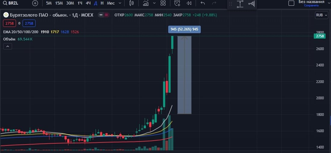 Всем доброго дня! Давненько я не выкладывал посты по нашему фондовому рынку, крипте и арбитражу. Причина проста - происходят такие события, которые требуют концентрации внимания. И вот один из таких моментов. На фоне обостряющихся геополитических событий во всем мире активно растет спрос на золото. Не стала исключением и наша золотодобывающая промышленность. Одной из таких компаний стала Бурятзолото, которая за несколько дней дала уверенный рост более 50%.