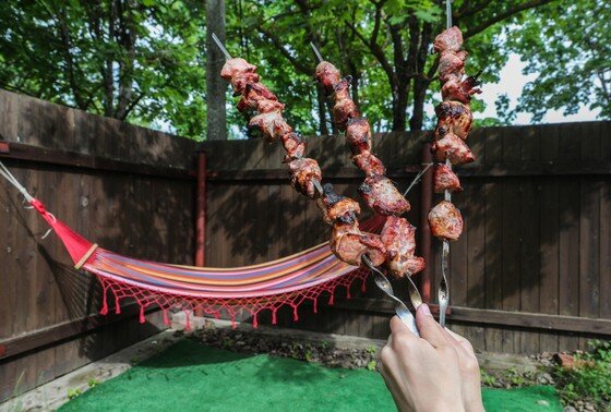 Около 40% россиян готовы съесть за один раз 500 граммов шашлыка или даже больше, следует из результатов опроса Россельхозбанка, которые публикует РИА Новости. По мнению большинства опрошенных, если мясо выбрано правильно и блюдо приготовлено с любовью для близких, то предела количеству шашлыка нет. Около четверти респондентов готовы съесть от 200 до 350 граммов, каждый пятый — менее 200 граммов, а 12% могут съесть до полукилограмма. Наиболее популярным мясом для пикника, по мнению опрошенных, является свинина. На втором месте — курица и индейка, затем идет баранина, говядина и разные виды рыбы. Примерно 5% опрошенных предпочитают шашлык из овощей или грибов. Большинство респондентов любят готовить шашлык сами, не доверяя это дело посторонним. Некоторые (около 10%) покупают готовое блюдо, а примерно каждый пятый приобретает замаринованное мясо, чтобы экономить время, но все равно радуется процессу приготовления шашлыка. Ранее диетолог Елена Соломатина назвала лучший маринад для шашлыка.