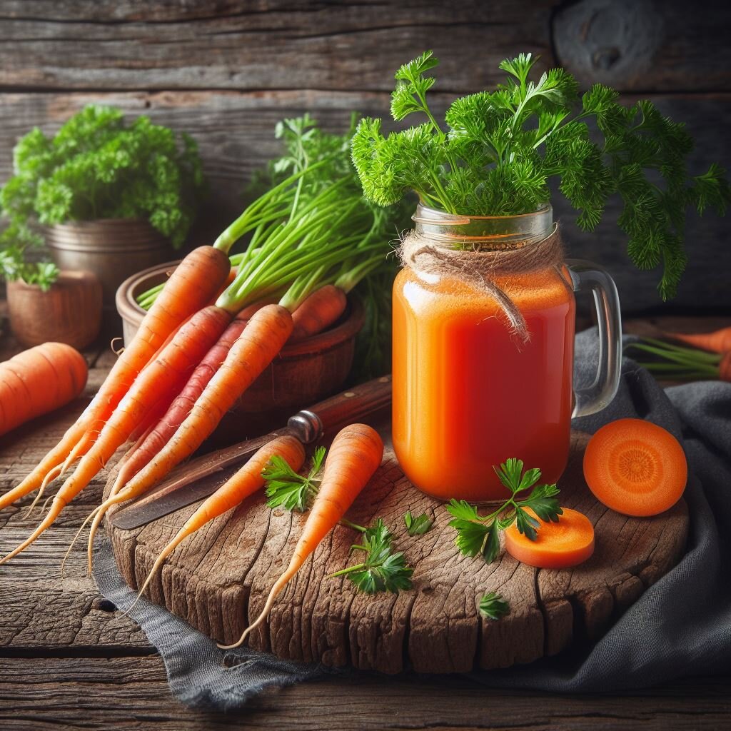 Всем привет из нашего уголка здоровья в Дзен "ЗОЖ Лайф | Здоровье 24/7"! Сегодня мы расскажем вам о чудо-напитке, который не только прекрасно утоляет жажду, но и приносит невероятную пользу Вашему здоровью — морковном соке. Почему его стоит включить в свой ежедневный рацион? Давайте разбираться! 1. Богатство витаминов и микроэлементов. Морковь — кладезь бета-каротина (провитамина A), витаминов C, K и группы B, а также полезных микроэлементов, таких как калий, фосфор, магний и железо. 2. Защита зрения. Благодаря высокому содержанию бета-каротина, который в организме превращается в витамин A, морковный сок способствует поддержанию хорошего зрения и может служить профилактикой ночной слепоты и уменьшению риска развития катаракты. 3. Улучшение кожи. Витамин A и антиоксиданты помогают поддерживать кожу здоровой, предотвращают её сухость, улучшают цвет лица, а также могут помочь в борьбе с акне и пигментацией. 4. Сердце и сосуды под защитой. Калий в составе морковного сока помогает контролир