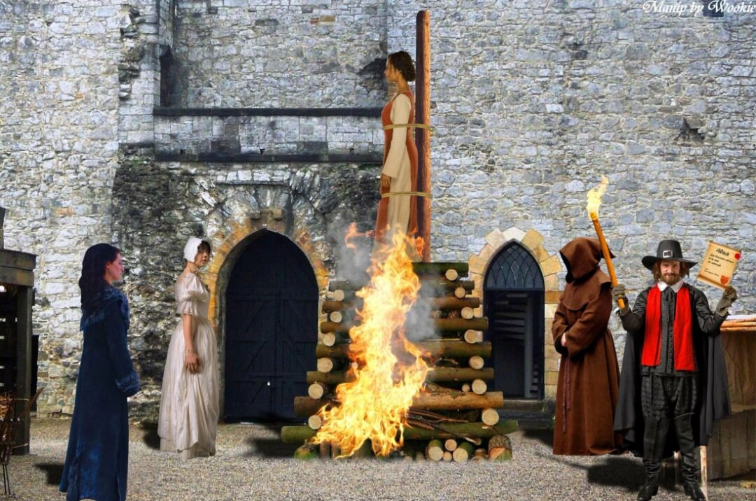 Времена были дикие, прав у женщин не было и больше верили тому, кто знатный и влиятельный. Беременную женщину сожгли на костре. В момент, когда её тело горело в огне её любовь превратилась в ненависть.